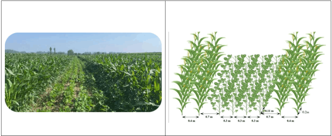 3、根據大豆玉米間作套種農藝特點,大豆采用先旋耕后種植,利于出苗、避免機具擁堵,玉米采用免耕種植,利于抗倒伏;
