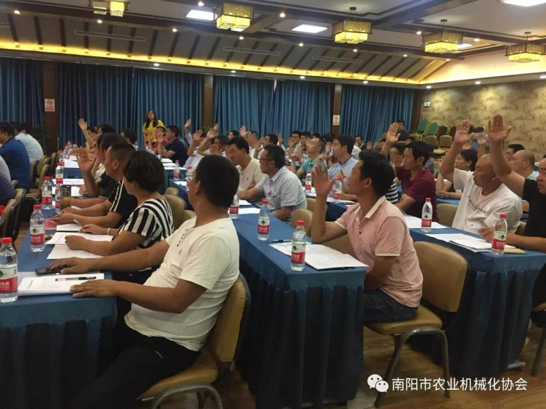 7月3日,南陽(yáng)市農(nóng)業(yè)機(jī)械化協(xié)會(huì)成立大會(huì)在南陽(yáng)市鷗凱印象酒店3樓會(huì)議室召開,南陽(yáng)市農(nóng)業(yè)機(jī)械化管理局黨組書記、局長(zhǎng)劉勤同志出席會(huì)議并做重要講話。選舉通過田云鎖(原南陽(yáng)市農(nóng)業(yè)機(jī)械公司總經(jīng)理)同志當(dāng)選為會(huì)長(zhǎng),亞澳南陽(yáng)農(nóng)機(jī)有限責(zé)任公司總經(jīng)理史炳哲、南陽(yáng)奇豐機(jī)械有限責(zé)任公司董事長(zhǎng)趙順奇、鎮(zhèn)平縣糧豐農(nóng)機(jī)農(nóng)民專業(yè)合作社理事長(zhǎng)薛云濤當(dāng)選為副會(huì)長(zhǎng)。