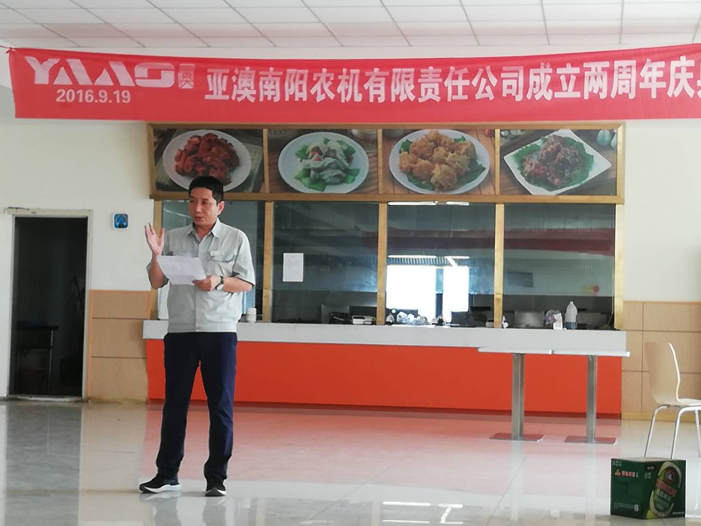 公司領(lǐng)導(dǎo)層、全體員工參加了慶典, 共同慶祝亞澳農(nóng)機(jī)成立開產(chǎn)兩周年。