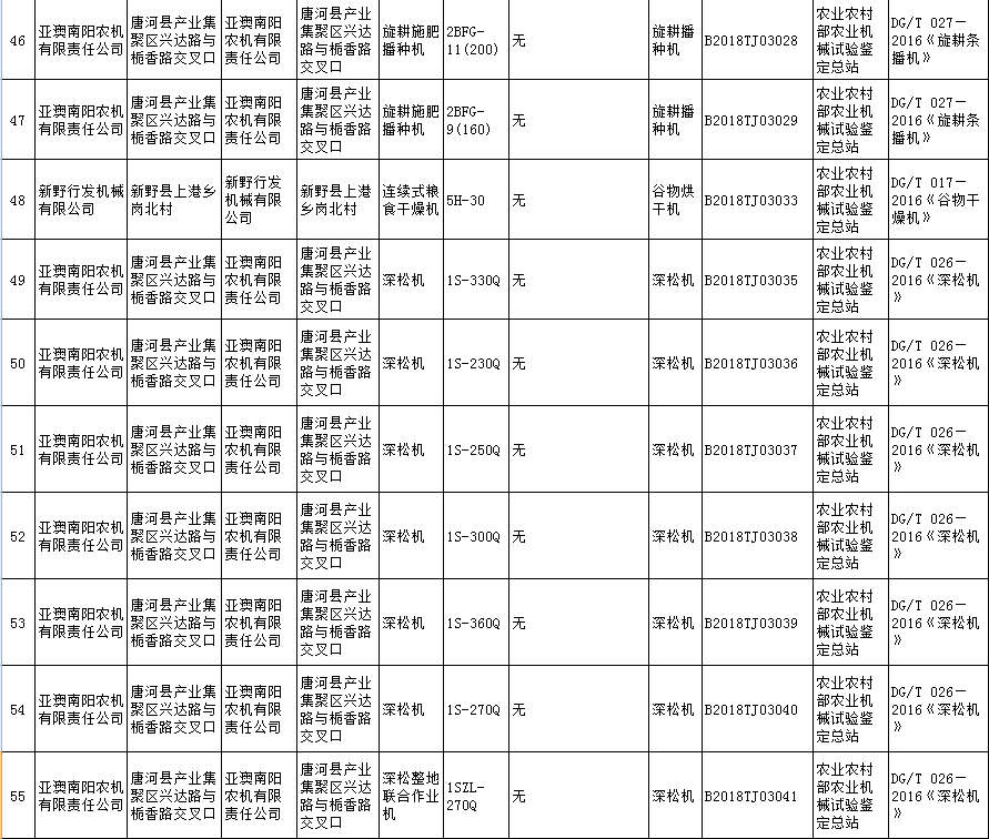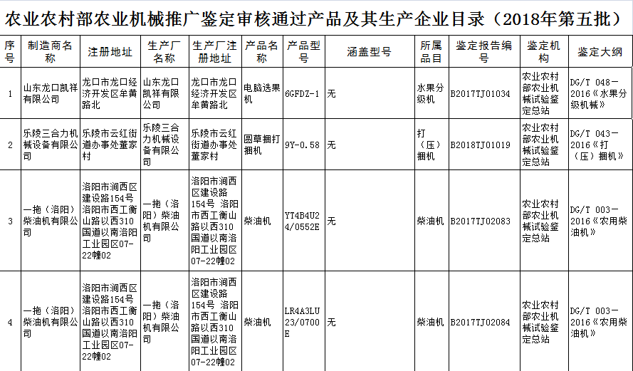 根據農業部農業機械試驗鑒定總站2018年第五批部級農機推廣鑒定結果的公示,9個型號的機型全部通過農機鑒定總站的批準。