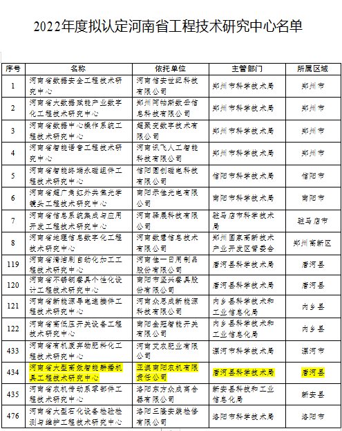 熱烈祝賀亞澳農機被河南省科學技術廳認定為 省級工程技術研究中心