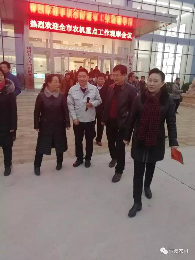 2017年12月13日,南陽市農機局劉勤局長在縣政府馬俊宏副縣長、縣農機局張凌局長陪同下帶領參加全市農機重點工作的市、各縣農機系統領導及各縣屬專業農機合作社人員,來到亞澳農機觀摩指導。